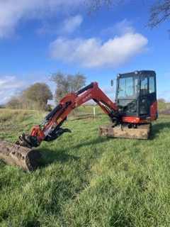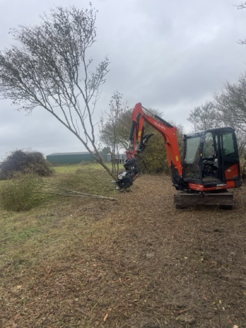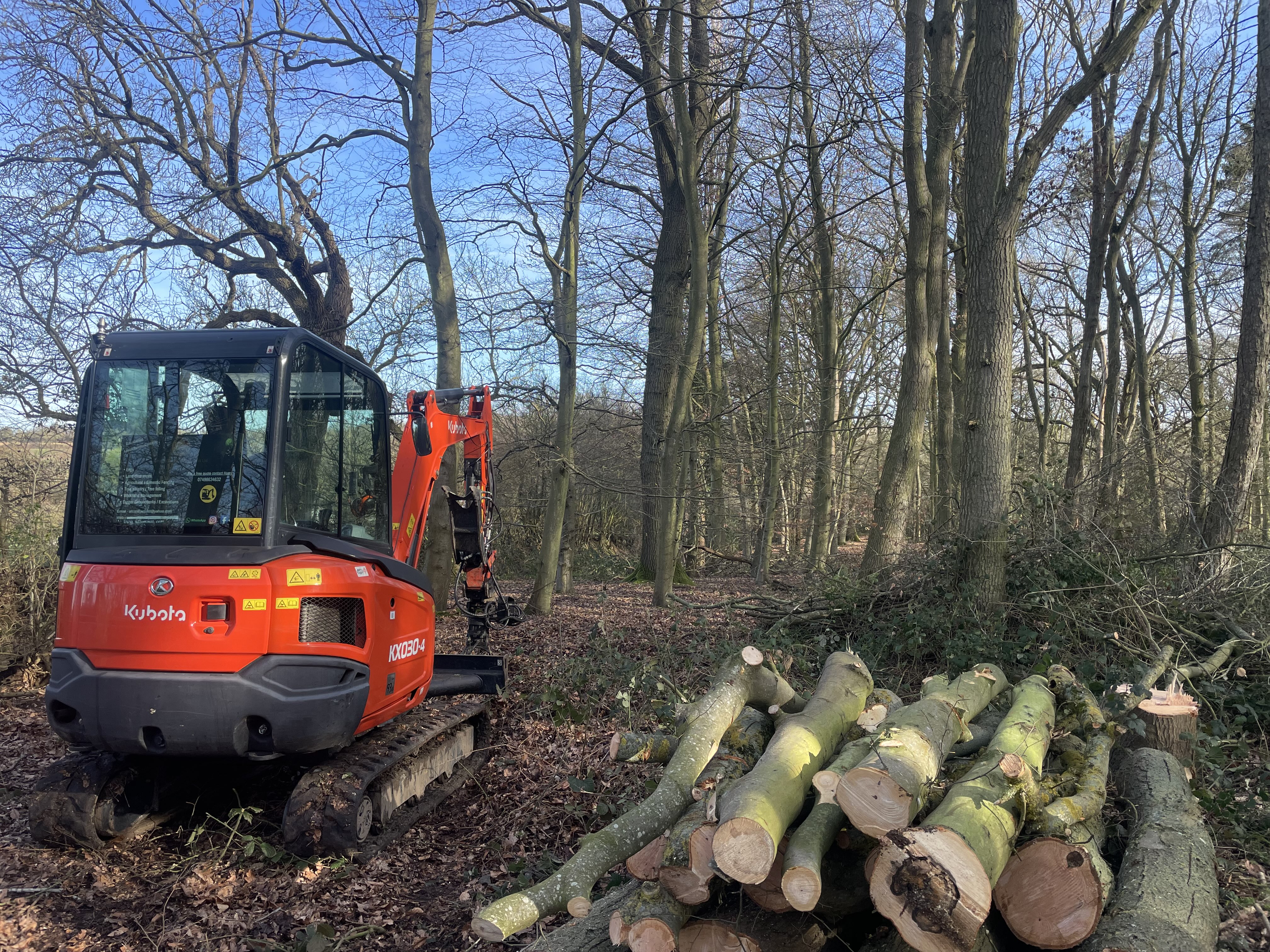 A recent coppice job removing large elm and ash trees alongside a country lane.