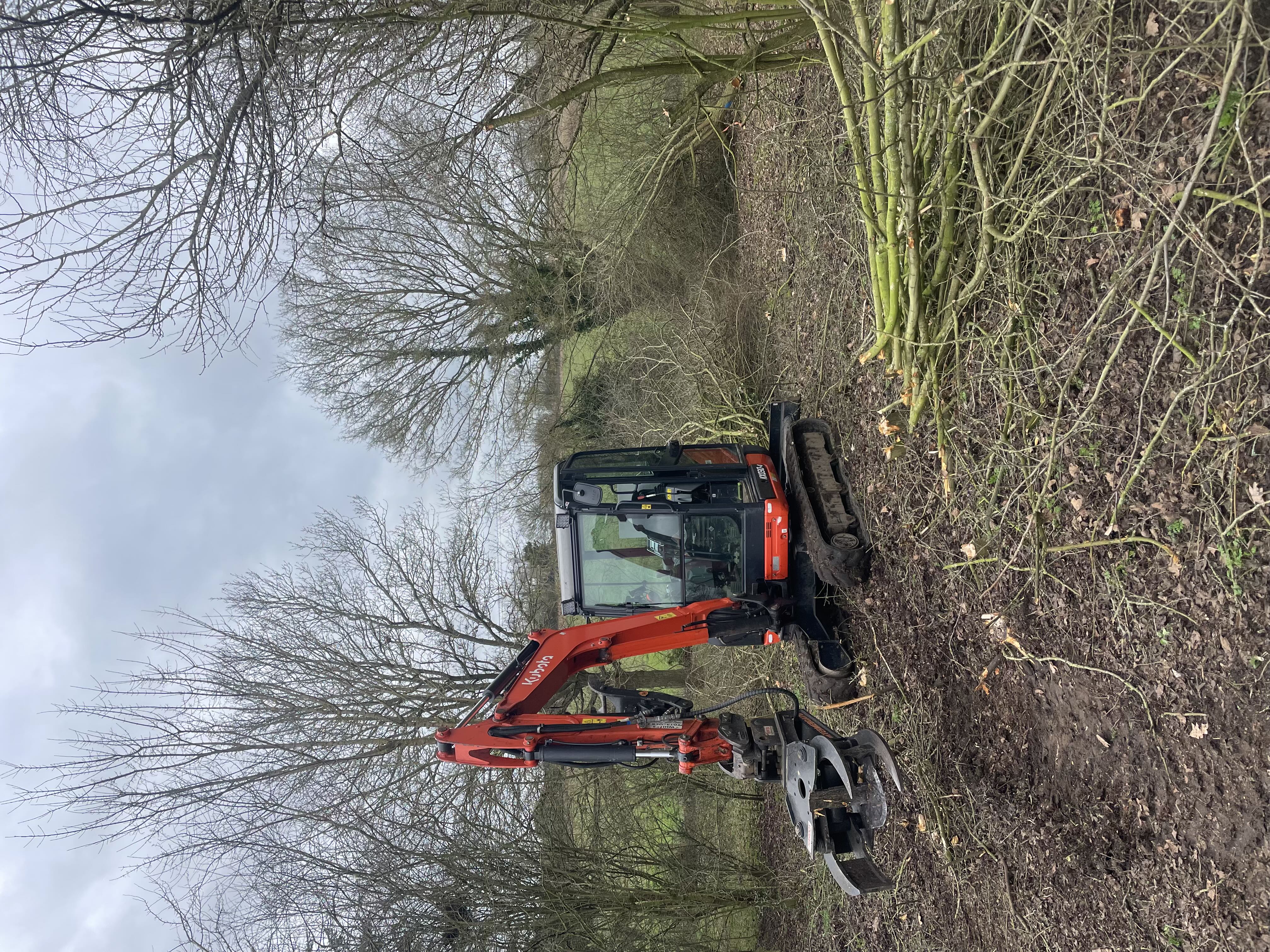 All works will be undertaken using our excavator and tractor to safely process and remove timber, helping to open up the roadside canopy and improve visibility and access along the lane for public safety.